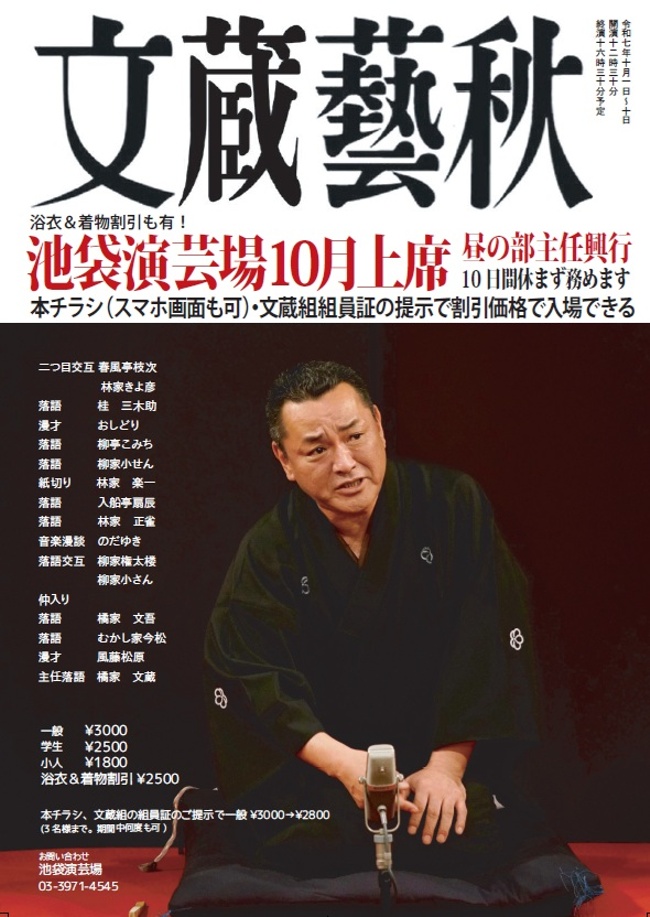 『文蔵藝秋』~1日から10日まで(休演なし)務めます~